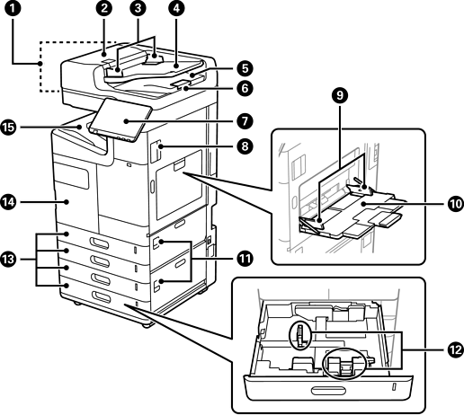 Служыць для аўтаматычнай падачы арыгіналаў. |