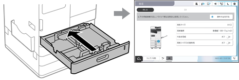 用紙カセット挿入時にプリンターに表示される画面で、用紙サイズと種類を登録しておくと、登録情報と印刷設定が異なるときにプリンターがお知らせします。サイズを間違って印刷してしまったり、用紙種類に合った印刷ができず色味が変わってしまったりすることを防ぎ、用紙やインクを無駄にせずに済みます。