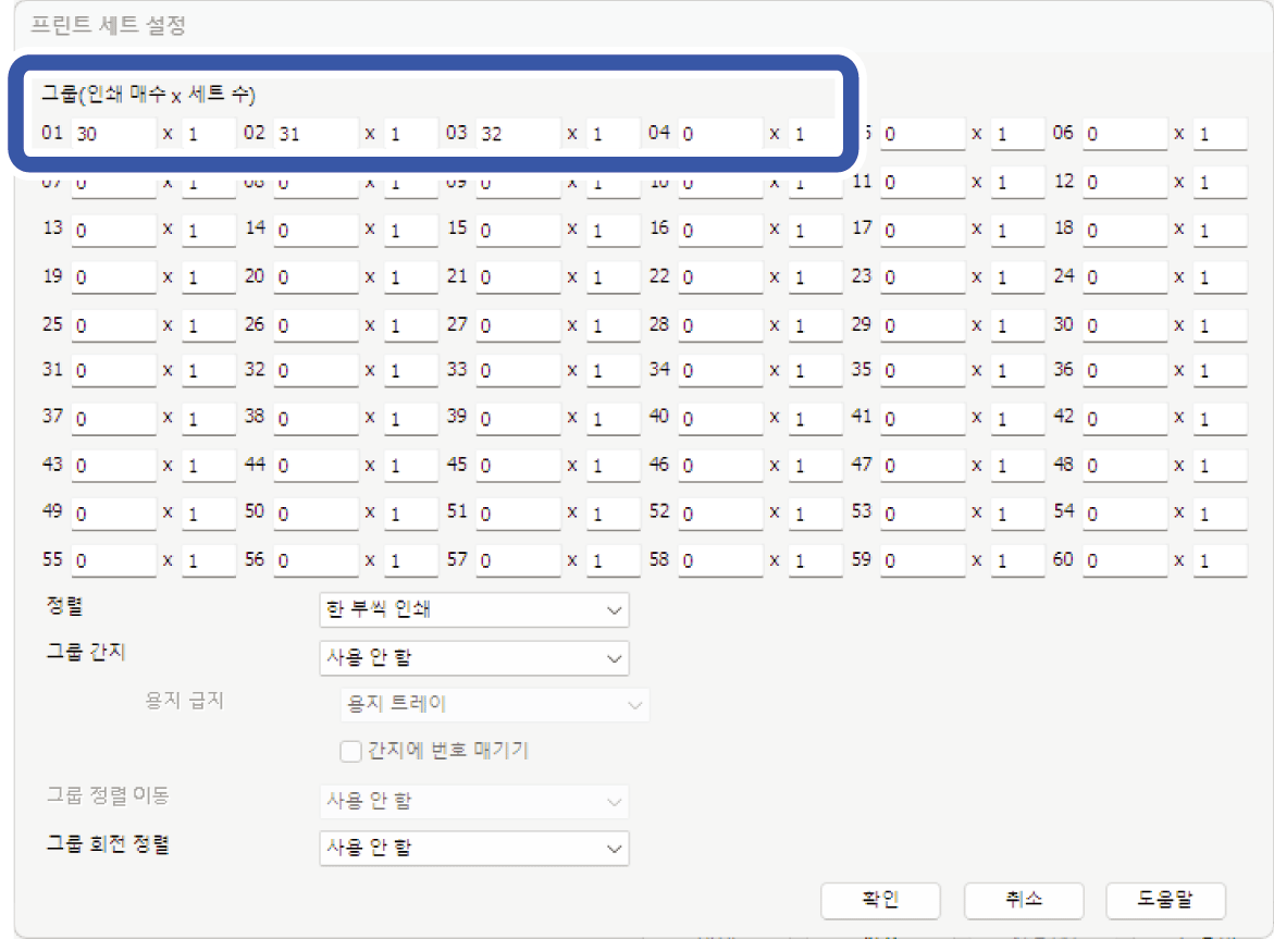 그룹(매수x세트)의 매수와 세트 수를 설정합니다.