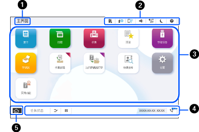 显示本产品的状态,如优先打印状态、错误状态、当前任务和未处理传真。 |