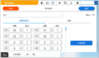 在 [份數及組合] 索引標籤上指定副本和分組數量。
