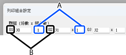 在 [群組 (份數 x 組合數)] 中設定份數和組數。