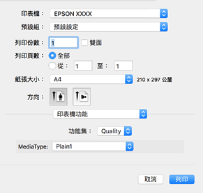 有關印表機驅動程式的詳細資訊,請參閱功能表選項。