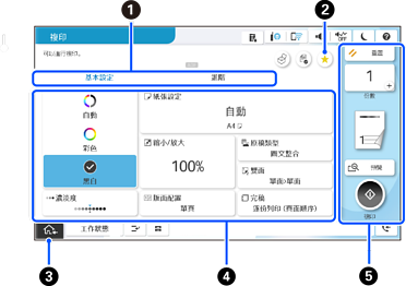 使用當前設定開始操作。項目因複印功能表而有所不同。 |