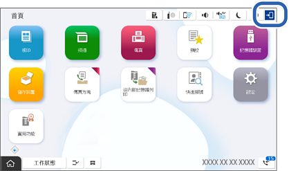 本說明是在已啟用管理員鎖和存取控制功能及當登錄一個或更多使用者時登入印表機的範例。畫面上顯示的內容會隨著型號與情況而改變。