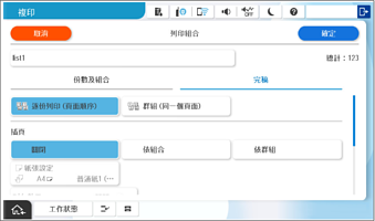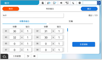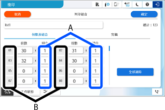 在 [份數及組合] 索引標籤上指定副本和分組數量。