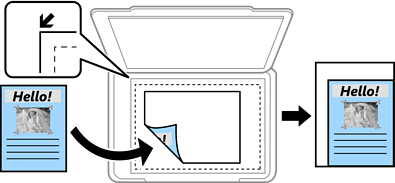 原稿の読み取り範囲を自動で検出して、用紙サイズに合わせた倍率で拡大または縮小します。原稿の周囲に余白がある場合、原点()からの余白部分はスキャン範囲に含まれますが、原点から反対側の余白部分は切り取られることがあります。
