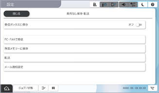 受信ファクスの転送結果を電子メールで送信(1件だけ)する設定ができます。必要に応じて[メール通知設定]を選択して、終了を通知したい処理の選択と送信先の設定をしてください。