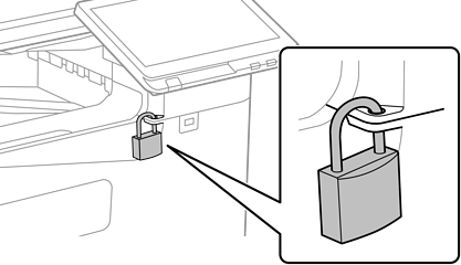 前面カバーをロックできます。管理者がインクカートリッジやメンテナンスボックスを管理したい場合に便利です。