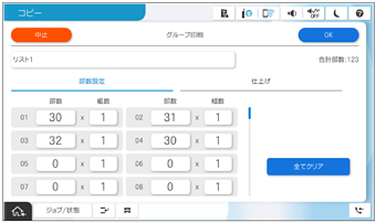 [部数設定]タブで部数と組数を設定します。