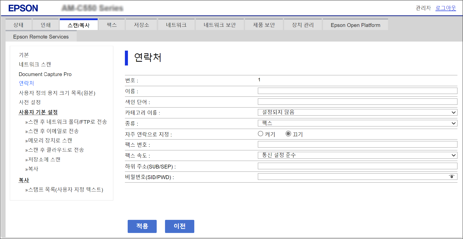 네트워크 폴더에 액세스하기 위한 사용자 이름을 유니코드(UTF-8) 30자 이내로 입력합니다. 단, 제어 문자 (0x00 ~ 0x1f, 0x7F)는 사용하지 마십시오. |