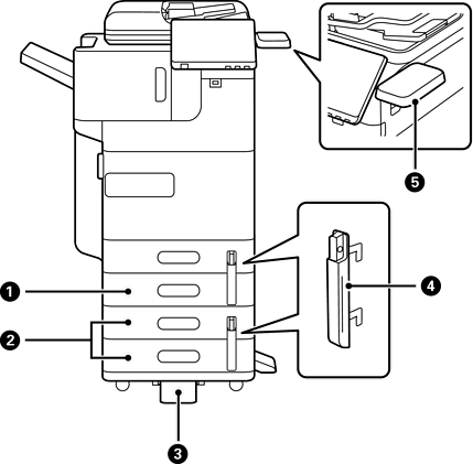 C3 və C4 kağız kasetlərini printerə əlavə edir. |