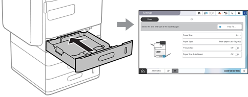 用紙カセット挿入時にプリンターに表示される画面で、用紙サイズと種類を登録しておくと、登録情報と印刷設定が異なるときにプリンターがお知らせします。サイズを間違って印刷してしまったり、用紙種類に合った印刷ができず色味が変わってしまったりすることを防ぎ、用紙やインクを無駄にせずに済みます。