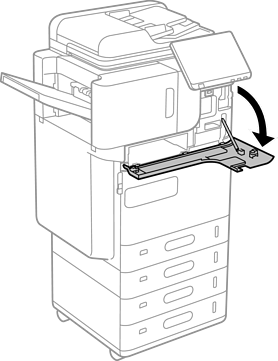 Com a folha dobrável da Wireless LAN Interface-P1 virada para si, encaixe-a firmemente na porta superior da unidade Wi-Fi.