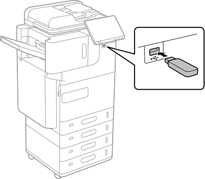 เสียบอุปกรณ์ USB ภายนอกเข้าไปในพอร์ต USB อินเทอร์เฟสภายนอก