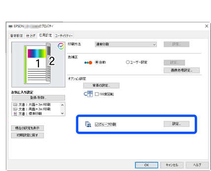 [グループ印刷]を選択して[設定]をクリックします。
