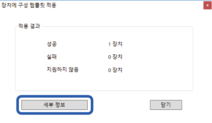 저장한 구성 템플릿을 프린터에 적용합니다. 템플릿에서 선택한 항목이 적용됩니다. 대상 프린터에 해당되는 기능이 없는 경우에는 적용되지 않습니다.