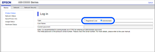 Naslednji postopek opisuje primer, ko je omogočena funkcija nadzora dostopa in je skrbnik izbral možnost Allow registered users to log in to Web Config.