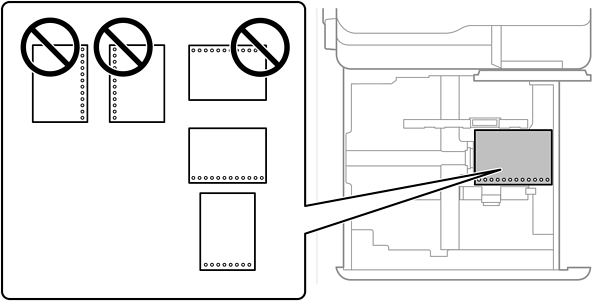 Perforiran papir naložite tako, da je stran z luknjami obrnjena proti vam. Če papir naložite v napačni usmerjenosti, se lahko zagozdi ali umaže notranjost tiskalnika.