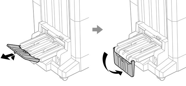 Ko je izvrženo določeno število dokumentov, je opravilo zaradi preprečitve zagozditev papirja zaustavljeno. Če izvlečete zaporo, omogočite neprekinjeno izvrženje dokumentov in tiskalniku preprečite, da zazna, kdaj je pladenj poln. V takem primeru dokumenti eden za drugim padejo na tla z roba pladnja zaključevalne enote za izdelavo knjižic.