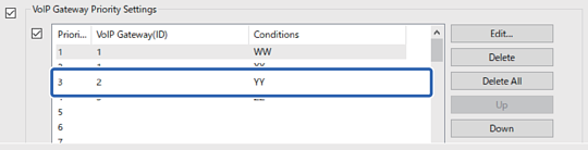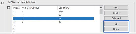 Na seznamu VoIP Gateway Priority Settings izberite element, za katerega želite spremeniti prioriteto.