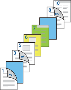 Kaseta za papir 1: bel papir (navaden papir), Kaseta za papir 2: svetlo moder papir (ločilni list), Kaseta za papir 3: rumen papir, Kaseta za papir 4: zelen papir