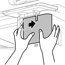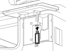 Poskrbite, da je zložljiv list na enoti Wireless LAN Interface-P1 obrnjen proti vam, nato pa čvrsto vstavite enoto v zgornji vhod enote Wi-Fi.