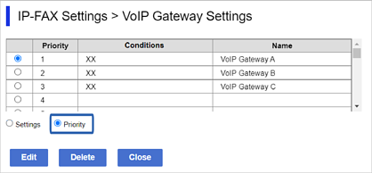 Kliknite VoIP Gateway Priority Settings > Edit.