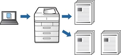Jos tulostat suuria asiakirjoja, voit tulostaa ensin yhden kappaleen tulosteen tarkistamista varten. Tämän jälkeen voit tulostaa useampia kappaleita tulostimen ohjauspaneelin kautta.