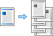 Toiminto käyttää kahta paperilähdettä. Lisää paperia pystysuorassa asennossa toiseen paperilähteeseen ja vaakasuorassa asennossa toiseen paperilähteeseen ja valitse sitten Paperilähde-asetukseksi Automaattinen valinta. Valitse Luovutustaso-asetukseksi Automaattinen valinta tai Etupuoli alaspäin -alusta. Tulosteet pinotaan kohteeseen Etupuoli alaspäin -alusta.