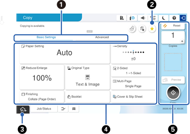 Vaihtaa asetusluetteloa välilehtien avulla. Perusasetukset -välilehdessä näytetään usein käytetyt asetukset. Lisäasetukset -välilehdessä näytetään muita kohteita, joita voidaan asettaa tarpeen mukaan. |