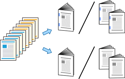 Voit tulostaa kunkin kopioryhmän satulaniiteillä tai taitteella.