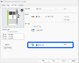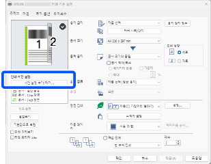 2 개의 용지 급지 장치가 사용됩니다. 기본 탭에서 용지 설정 설정을 자동 선택으로 지정합니다.