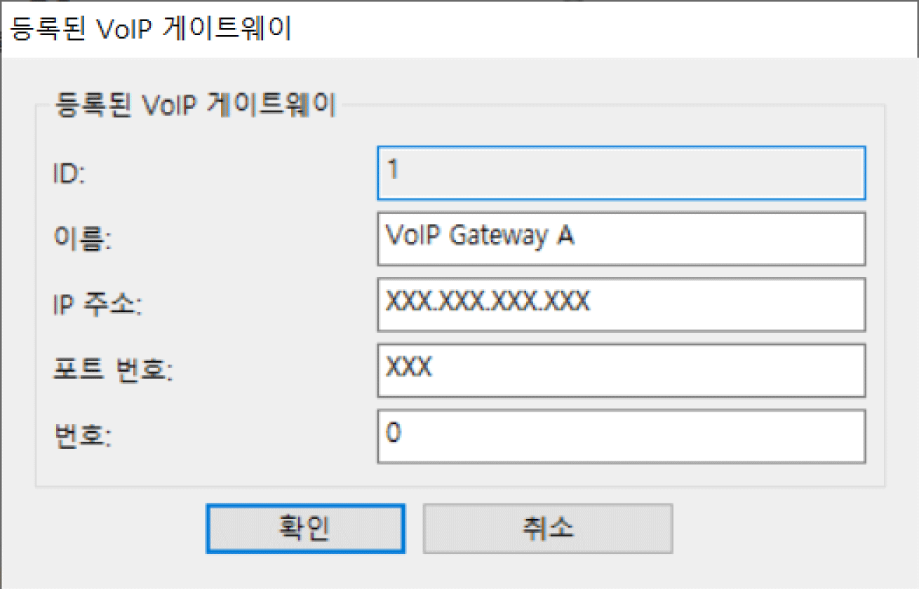 IP 팩스 송수신에 사용할 VoIP 게이트웨이를 등록합니다.