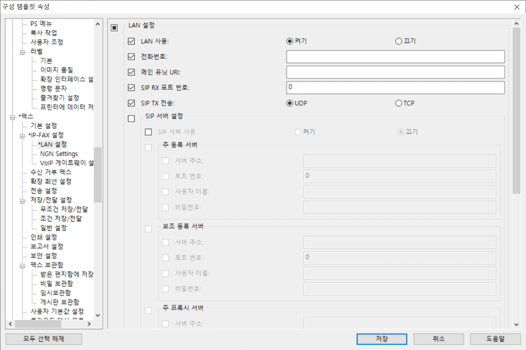 설정 항목 화면에서 값을 입력하거나 선택하고, 적용할 항목을 활성화 합니다.