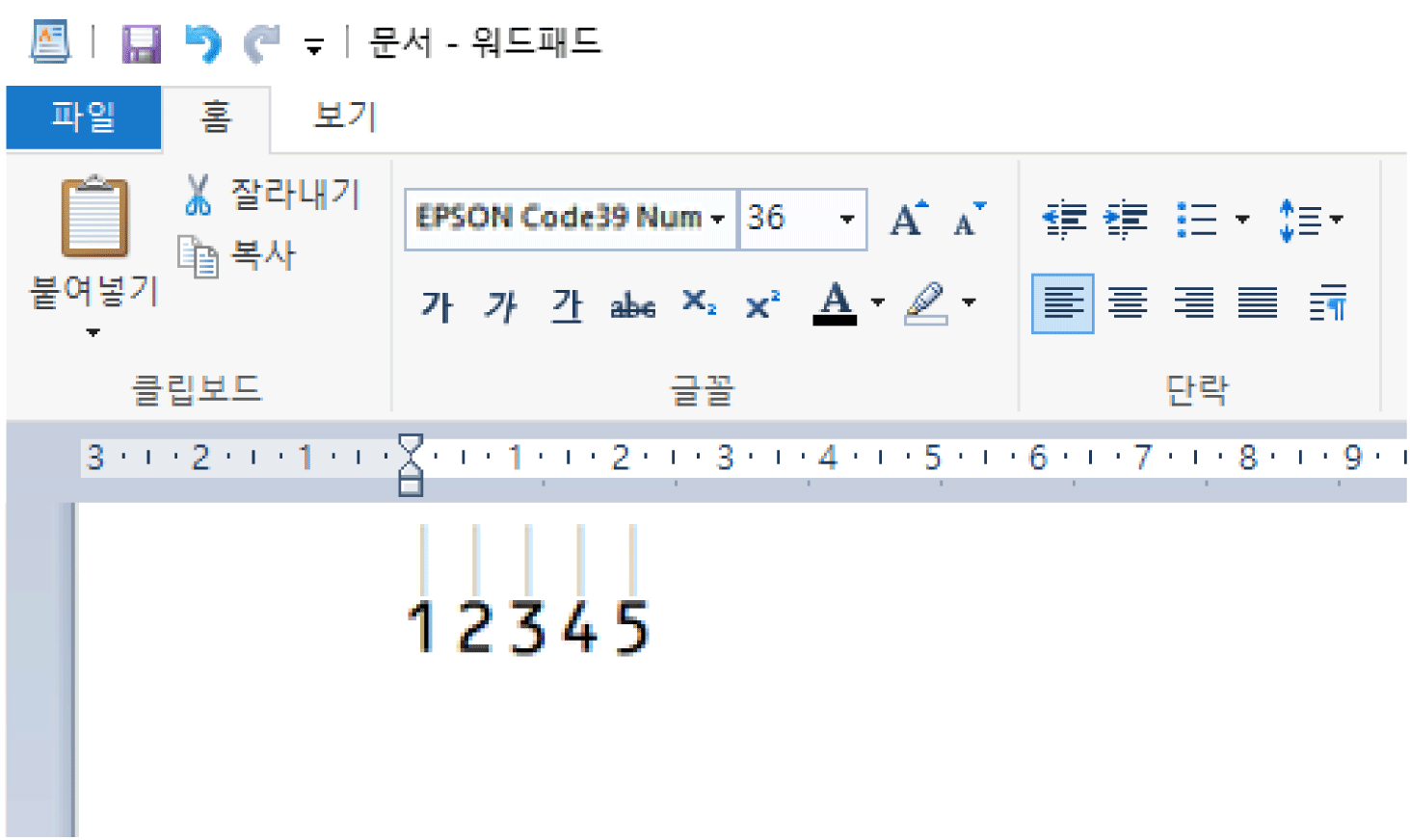 Epson BarCode Fonts를 사용하여 바코드를 생성하고 인쇄하려면 아래 단계를 따르십시오. 이 지침에 포함된 응용 프로그램은 Windows 10Microsoft 워드패드입니다. 다른 응용 프로그램에서 인쇄할 경우 실제 절차가 다소 다를 수 있습니다.