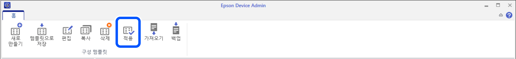 저장한 구성 템플릿을 프린터에 적용합니다. 템플릿에서 선택한 항목이 적용됩니다. 대상 프린터에 해당되는 기능이 없는 경우에는 적용되지 않습니다.