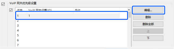如需更改 VoIP 网关的发送条件,在 VoIP 网关优先级设置列表中选择要更改的项目,然后单击编辑。