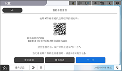 只需为本产品和要连接到的智能设备设置一次即可。除非禁用 Wi-Fi Direct 或者将网络设置恢复为缺省值,否则无需再次进行这些设置。