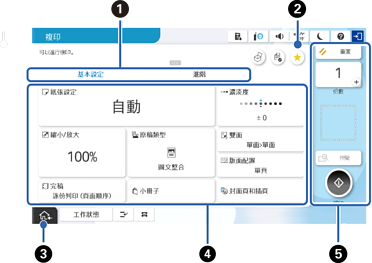使用當前設定開始操作。項目因複印功能表而有所不同。 |