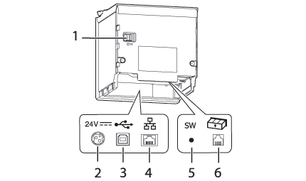キャッシュドロアーのモジュラーケーブルを接続します。 |