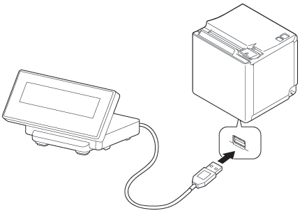 Pievienojiet klienta displeja USB kabeli pie printera USB savienotāja.