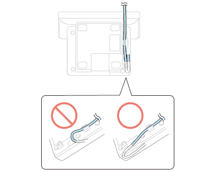 Merknad:Hvis du trekker kabelen ut fra forsiden, bretter du kabelen inn i hulrommet på stativet, så fester du kabelen som vist på illustrasjonen slik at den ikke blir løs.