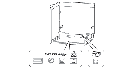 Prijunkite kintamosios srovės adapterį ir sąsajos kabelį prie spausdintuvo apačioje esančių jungčių.