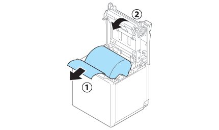 Saque un poco de papel y cierre la cubierta del rollo de papel.