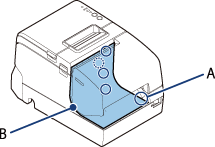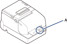Remarque :Si la LED Bande n'arrête pas de clignoter, téléchargez l'outil de réglage du capteur de bande de papier Epson TM-H6000V (Windows uniquement) à l'adresse suivante. Utilisez cet outil pour régler la sensibilité du capteur de la bande de papier (A sur l'illustration). Reportez-vous au manuel de l'outil de réglage du capteur de bande de papier Epson TM-H6000V pour en savoir plus sur la procédure de réglage. https://support.epson.net/setupnavi/?PINF=swlist&MKN=TM-H6000V ![]() |