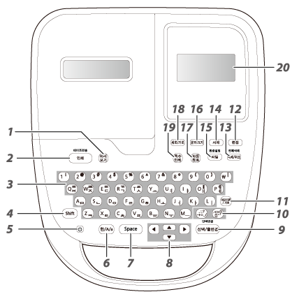 라벨을 인쇄합니다. 테이프를 보내거나 자르려면 를 누른 상태에서 이 버튼을 누릅니다. 키 메뉴 인덱스 |