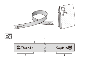설정한 길이 내에는 인쇄하지 않고 테이프를 넣도록 간격 길이를 설정할 수 있습니다. 이 기능을 사용하면 텍스트 앞뒤로 여백을 남기거나 라벨의 한쪽 끝과 반대쪽 끝에 서로 다른 텍스트를 인쇄할 수 있습니다.