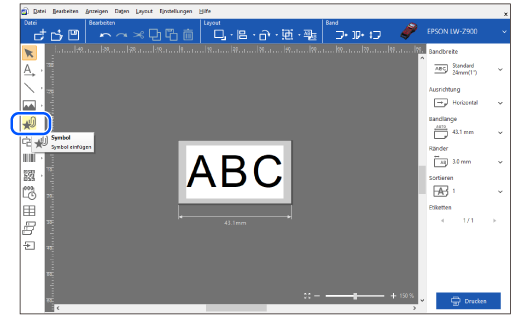 Sie können verschiedene Objekte wie z. B. ein Symbol, einen Rand, ein Bild oder einen Barcode in ein Etikett einfügen und diese frei anordnen. Nachfolgend zeigen wir Ihnen ein Beispiel, um ein Symbol einzufügen, nachdem bereits Text eingefügt wurde.