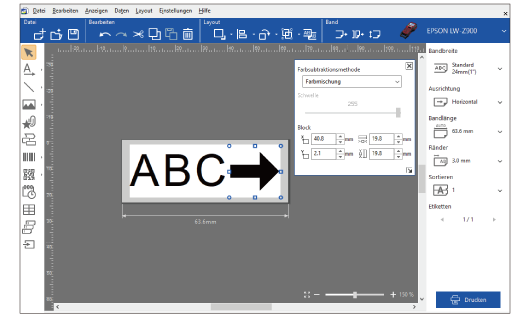 Hinweis:Label Editor bezeichnet ein eingefügtes Objekt als „Block“. |